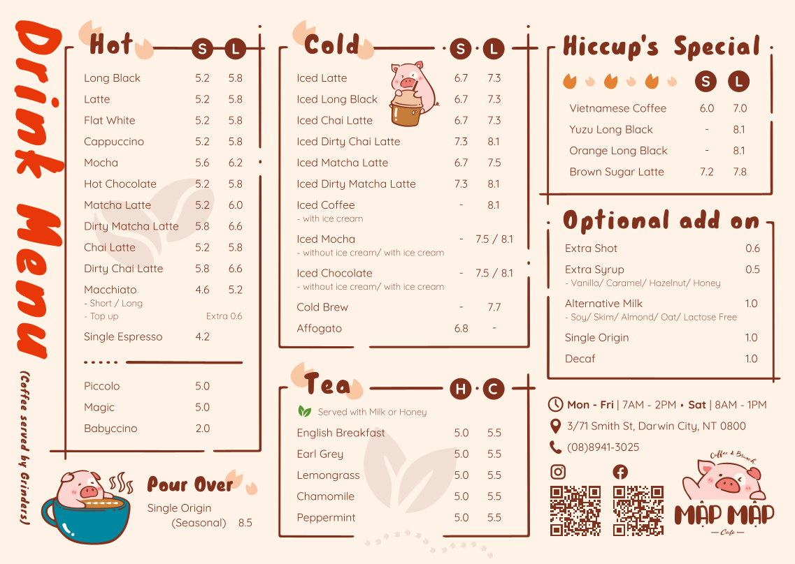 Welcome to Mập Mập Cafe - Coffee & Brunch, a charming spot in Darwin City that perfectly combines cozy ambiance and a delightful menu. Specializing in both coffee and classic brunch fare, this cafe offers a wide array of delicious options. Indulge in their exquisite hot drinks, from a rich Long Black to a creamy Dirty Matcha Latte, catering to every caffeine craving.